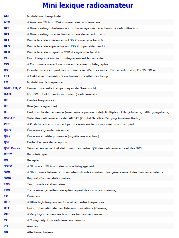 Comme pour tout loisir, métier, activité il existe un jargon spécifique au radio amateurisme.